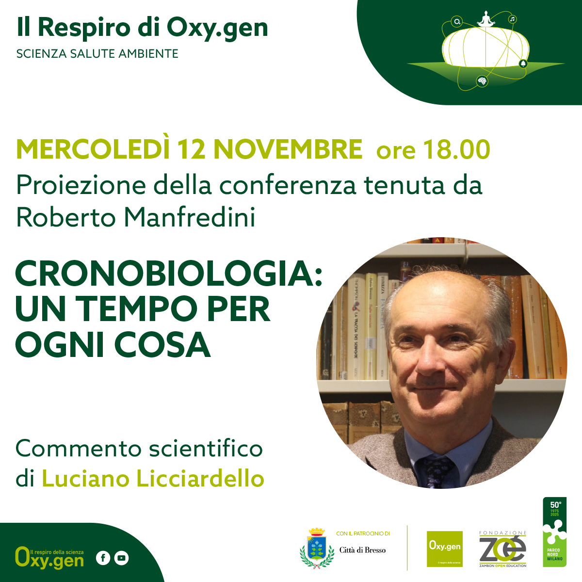 Chronos e bios, tempo e vita. Nel 2017 il Premio Nobel per la medicina è stato assegnato a Hall, Rosbash e Young per gli studi sull’orologio biologico circadiano. Di cosa si tratta? L’attività ritmica di ogni cellula, di ogni organismo vivente è scritta nel DNA dei nostri geni e la rotazione della Terra sul suo asse, con la conseguente alternanza di luce e buio, rappresenta il regolatore del nostro cervello.